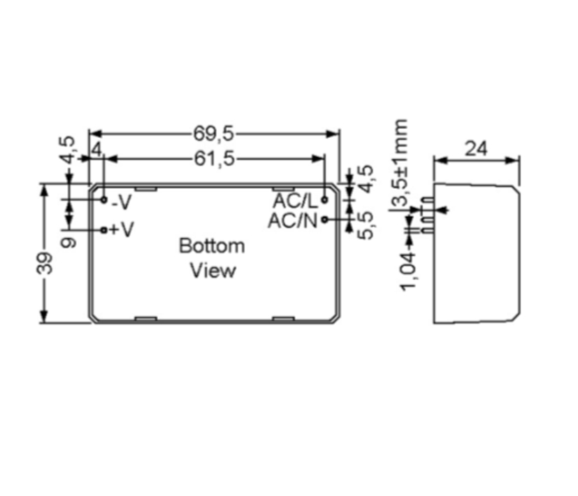 - Abmessungen: 68,5mm B: 39,0mm H: 24,0mm Pin-Lochabstand: 9mm + 5,5mm siehe Zeichnung weitere Bilder