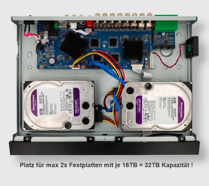 Festplattenplätze = 2x SATA-Port intern / Max. Größe pro HDD 16TB = Gesamt 32TB möglich !