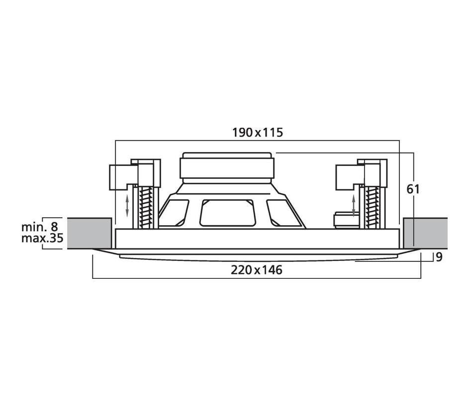 + Für Wand-/Deckenstärken 8-35mm