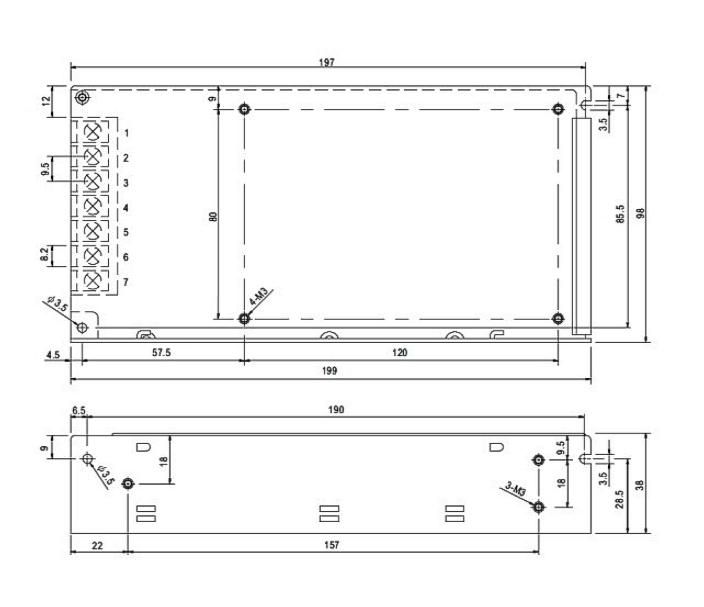 - Abmessungen: L: 197mm H: 38mm B: 98mm ( siehe auch Zeichnung weitere Bilder )