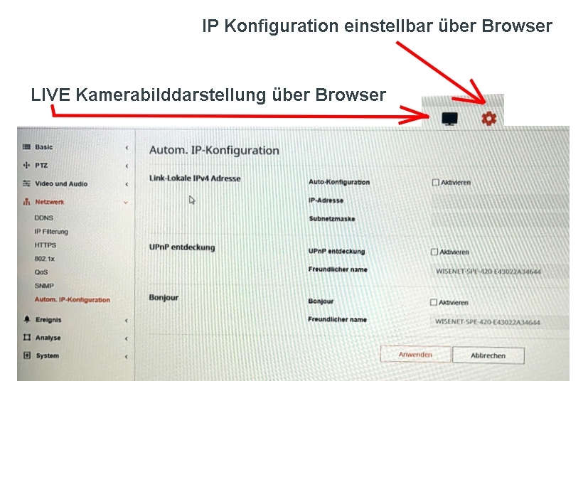 + Alarmauslöser Bewegungserkennung, Alarmeingang, Videoverlust, Manipulation, Netzwerktrennung, Alarmereignisse alles bequem über Brower einstellbar
