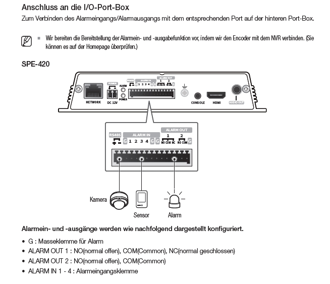 + Alarmeingänge - Ja 1-4 = + Alarm E/A 4 Eingänge ( über Klemme )
