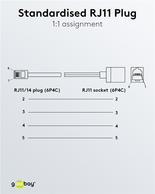 Genormte RJ11-Stecker mit 1:1 Belegung (6P4C-Stecker)