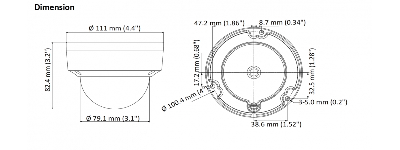 Kameratyp BNC Dome-Kamera mit kleinen Abmessungen nDM 111mm NEOSTAR 8.0MP 4K Vandalensichere EXIR TVI / CVI / AHD Dome-Kamera, 3840x2160p, Objektiv 2.8mm Weitwinkel, Nachtsicht 30m, WDR 130dB, Ultra-Low-Light, 12V DC, IK10, IP67