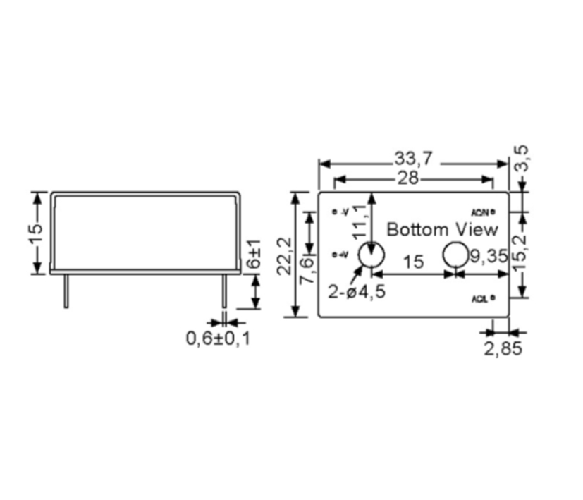 - RM der Lötstifte/Pins: Input: 15,20mm / Ausgang: 7,60mm /