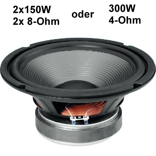 258mm 10zoll Basslautsprecher 2x 150W 2x8Ohm SPH250TC mit Doppelschwingspule