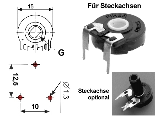 Produktinformationen "500Kohm Trimmer Poti T15 stehend RM10x5 Steckachse"