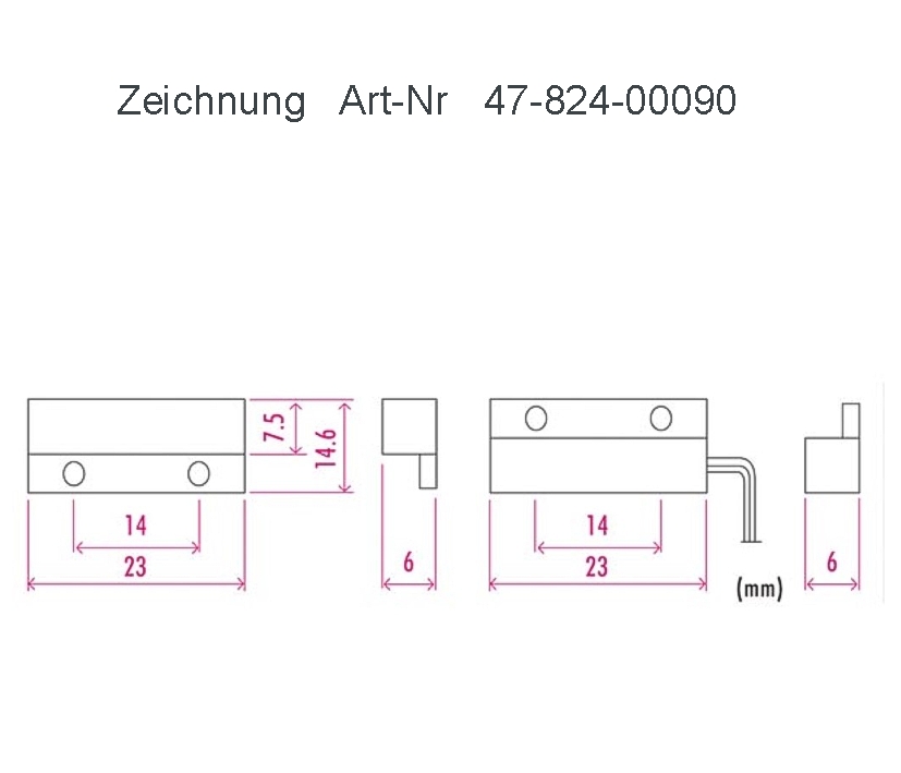 - Art-Nr 47-824-00095 = Magnetkontakt Reedkontakt NO-NC mit Wechslerkontakt Reedschalter Weiss 23x14mm ( Magnet dazu otional erhältlich )
