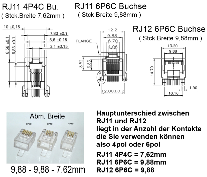 RJ12 Adapter 6pol Buchse auf 6pol Buchse 1zu1 belegt 6P6C
