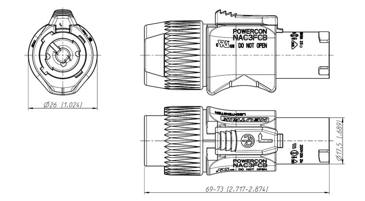 - PowerCon Netzstecker bis zu 20A bei 250Vac