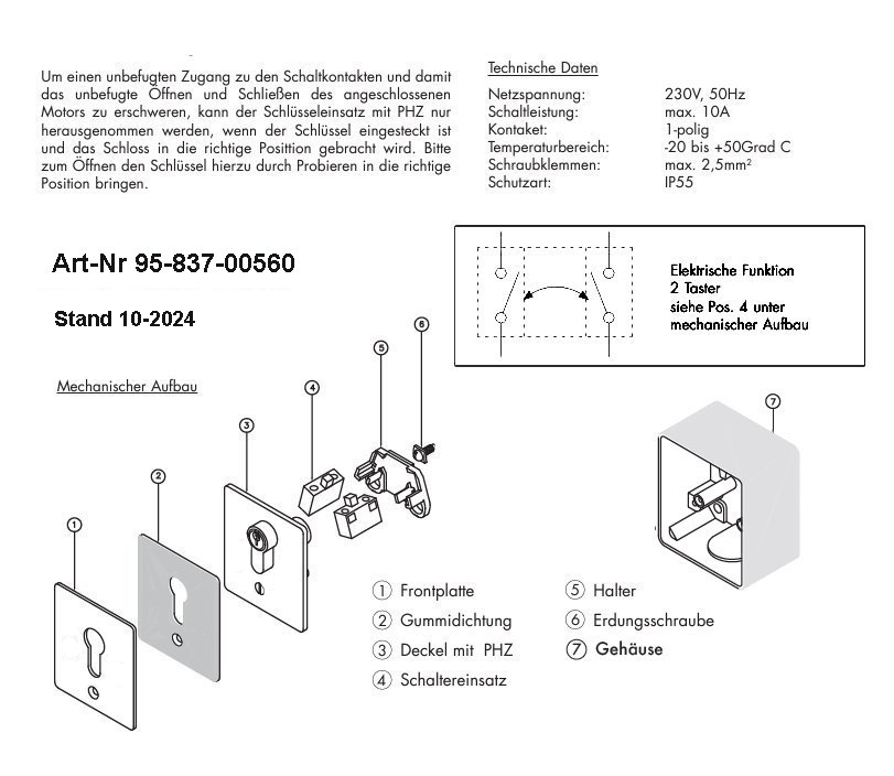 - Schlüsselschalter ( Taster ) inkl. Standard-Profil-Halbzylinder und 3x Schlüssel