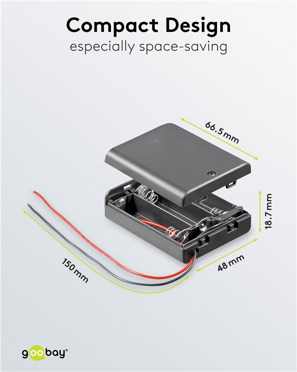 - Der Batteriehalter kann in ein batteriebetriebenes Gerät eingebaut oder daran befestigt werden.