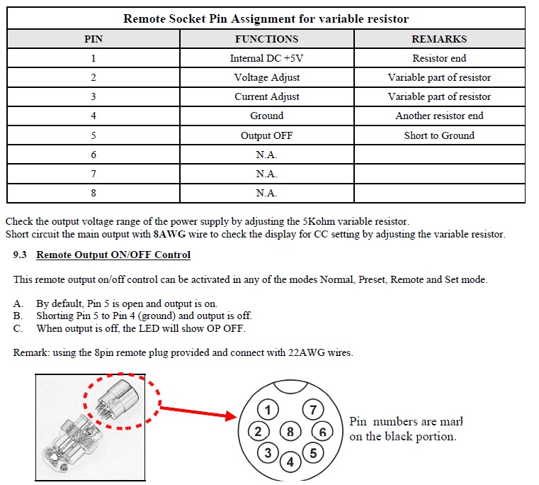 Labornetzteil bzw. Hochleistungsnetzteil mit Fernbedienungsmöglichkeit.Ideal für den Betrieb von Geräten und Schaltungen mit sehr hohem Strombedarf. Das 900Watt Labornetzteil ist stufenlos regelbar Spannung: von 1-15V und die Strombegrenzung 0-60A. Für den hohen Laststrom ist ein Paar Schraubklemmen auf der Geräterückseite angebracht und zusätzlich auf der Frontseite ein Ausgang der aber auf 5-Amp. begrenzt ist. Digitales 3-Digit LED-Display für Strom- und Spannungsanzeige. Überlast- und Kurzschlussfest mit Overloadanzeige sowie HF-fest mit automatischer Abschaltung bei Überlastung. Rückseitig temperaturgesteuerter Lüfter. Dieses Schaltnetzteil hat einen Wirkungsgrad von bis zu 85% bei sehr gerigem Gewicht von nur 3,2Kg.Technische Daten:Ausgangsspannung: 1-15V (DC) stabilisierte Gleichspannung Ausgangsstrom: 0-60A max. 60A Leistung: 900Watt Lastausreglung: 0,05% +3mV Restwelligkeit: 40mV effDigitales 3-Digit LED-Display für Strom- und Spannungsanzeige.8-poliger FernsteueranschlussStromversorgungseingang: 230V AC 50HzNetzspannungsausregelung: 0,1% +5mV Abmessungen: B:200mm H:90mm T:275mmGewicht: 3,2kg.Fernbedienungsmöglichkeiten/Funktionen:A: Extern ON/OFF B: extern Regeln (die Ausgangsspannung V) über externes 5K Poti C: extern Regeln (den Ausgangsstrom A) über externes 5K PotiD: extern Regeln (die Ausgangsspannung V) über interne oder externe 5Vdc Fremdspannung E: extern Regeln (den Ausgangsstrom A) über interne oder externe 5Vdc FremdspannungOptional erhältlich für externe Fernsteuerung (Zubehör):1x 8pol. Kupplung = Art.Nr: 39-857-00013 1x 5K Poti mit Achse = Art.Nr: 21-817-00510 oder1x 5K Poti 5gang mit Achse = Art.Nr.: 21-817-00230 oder1x 5K Poti Standard Kst.Achse= Art.Nr.: 21-817-00069 Meterware 8-adrig geschirmte Steuerleitung = Art.Nr.: 42-682-00030