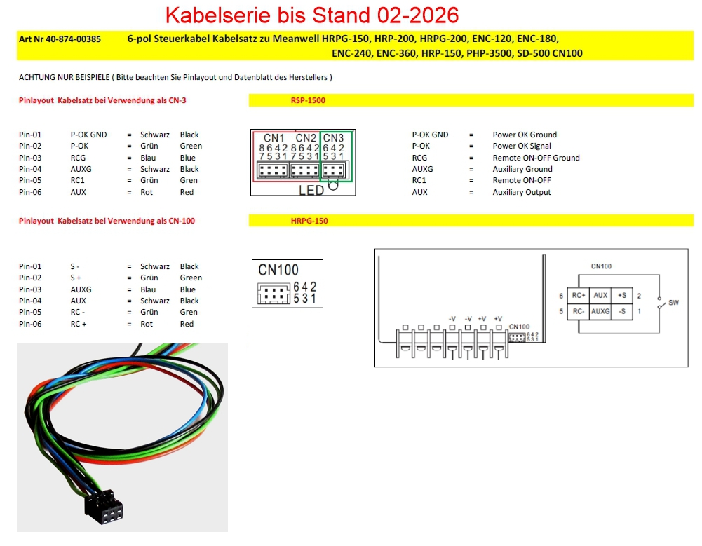 6pol Stecker zu MeanWell Kabelkit bzw. Steuerleitung für MeanWell Netzteile Serie usw.