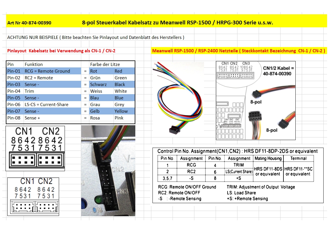 - z.B. CN1 / CN2 ( HRS DF11-8DP-2DS ) zu RSP1000 / RSP1500 / RSP2400 / RSP3000 ...