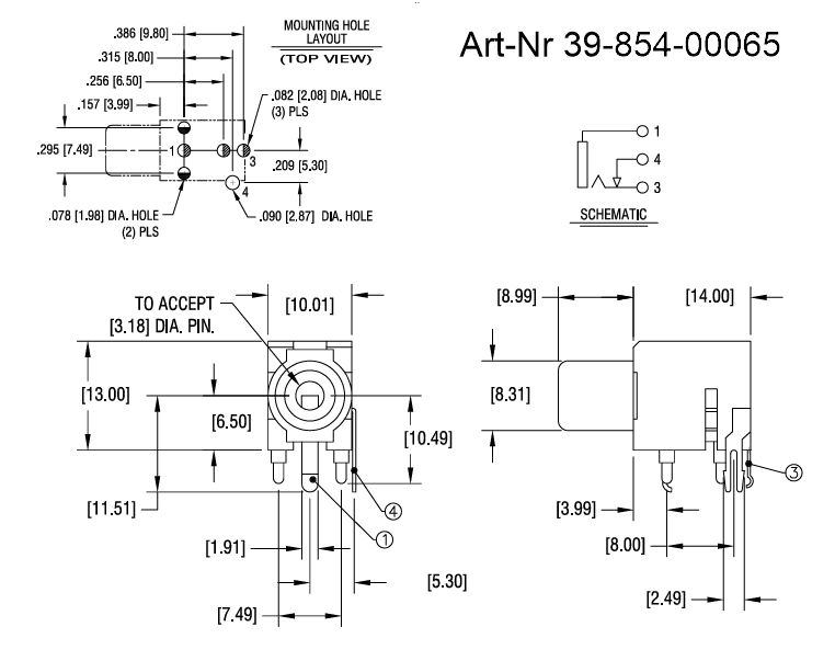 + Cinchbuchse für die Leiterplatten- bzw. Printmontage