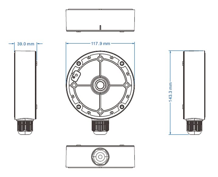 Aufputzadapter Kabeldose für Geovision Kamera GV-GPTZ4810 + GV-GDRF4800 und baugleiche