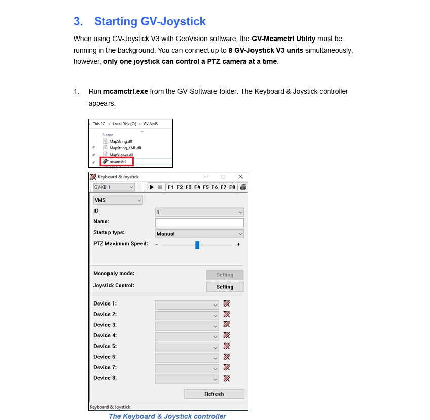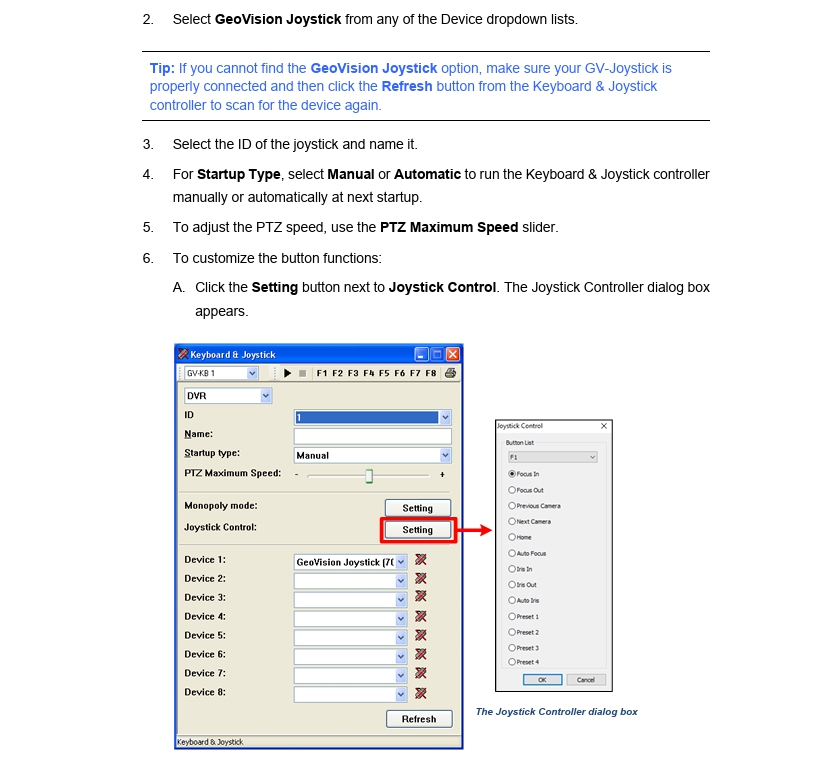- Der USB Joystick V3 läuft Standalone mit den PTZ Kameras in Verbindung mit der VMS oder NVR Software von Geovision