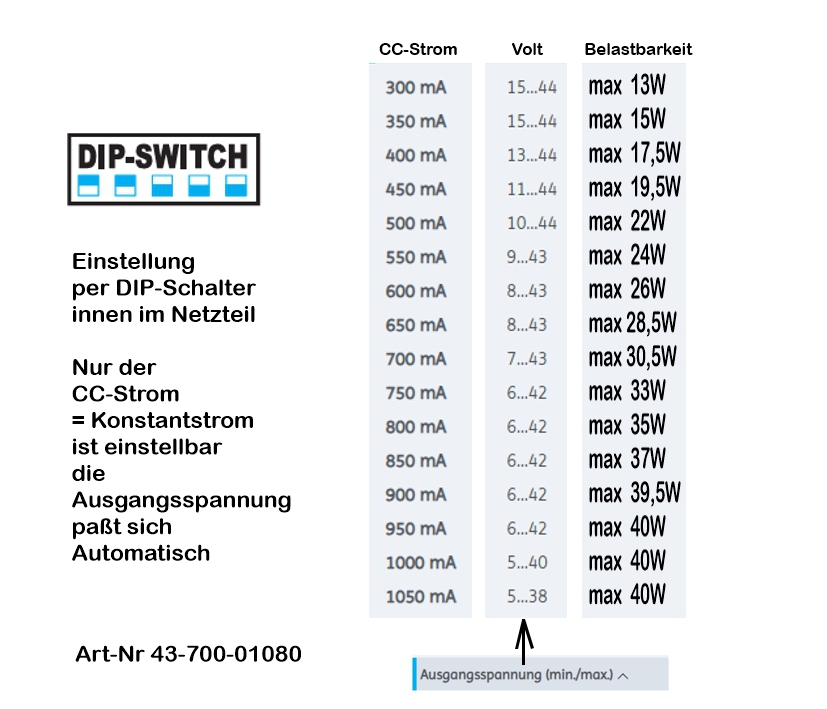 Ausgang einstellbar für stromgesteuert LED Leuchtmittel
