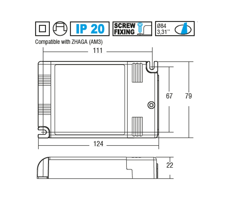 + Abmessungen: L:125mm B: 79mm H: 22mm