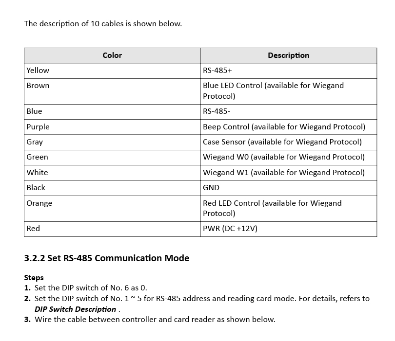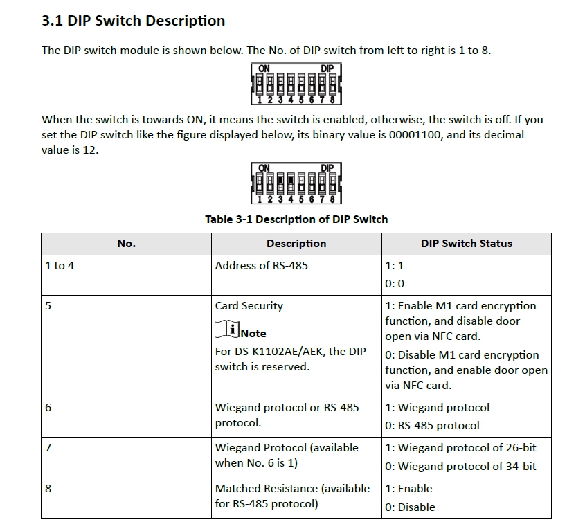 RS-485- und Wiegand-Protokoll (W26/W34) einstellbar per DIP-Schalter