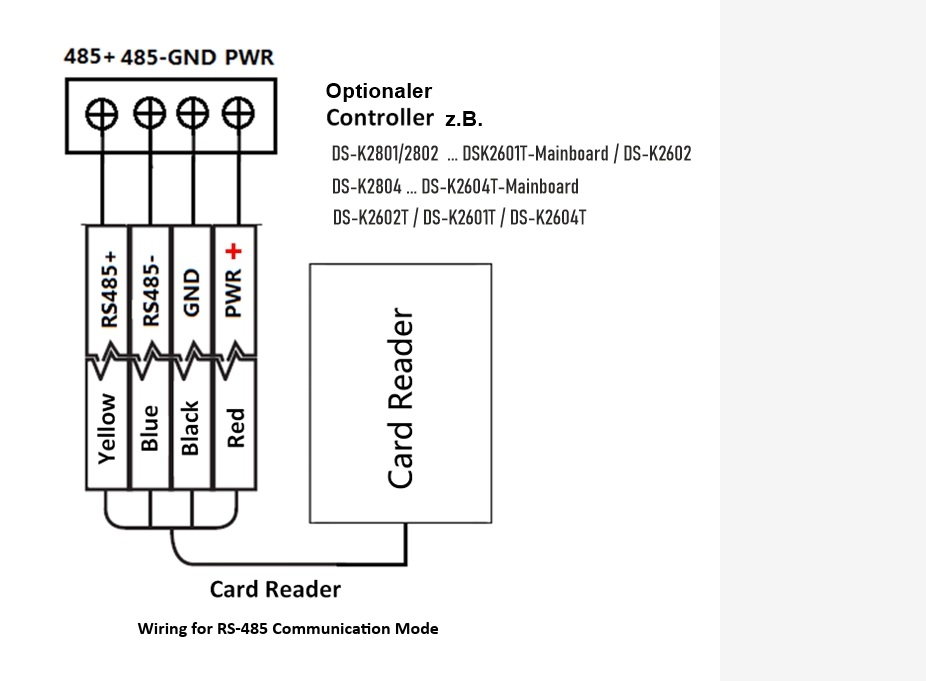RS-485- und Wiegand-Protokoll (W26/W34) über optionalen Kontroller