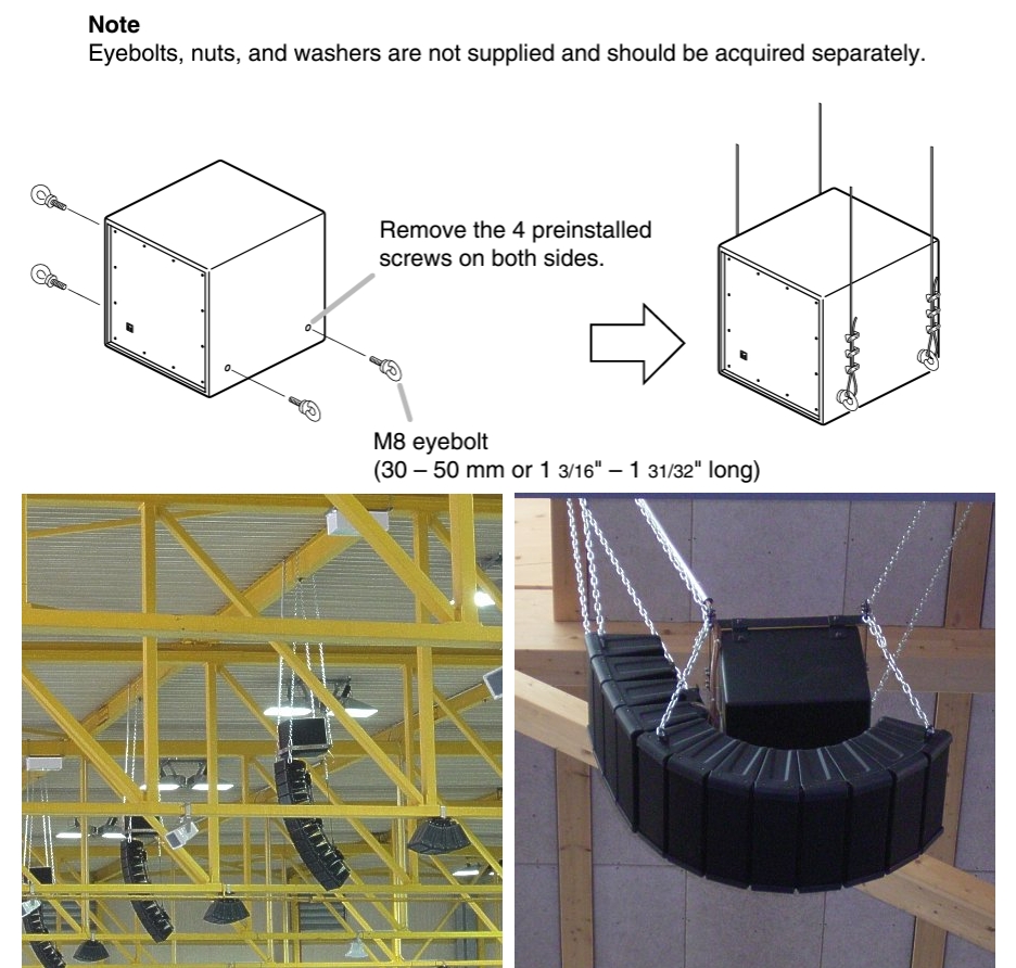 - zur sicheren Befestigung ( Rigging ) an Boden-, Wand-, Eck- oder auch Deckenmontage