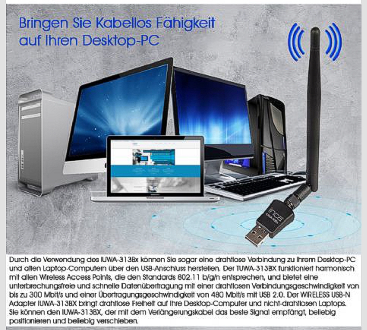 Ideal für Computer ... durch die abgewinkelte Antenne ist das Optimal für klassische Tower oder SFF Computer