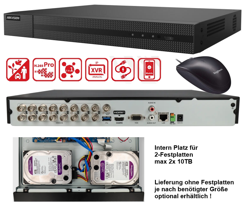 5in1 DVR Rekorder für BNC Signale CVI + TVI + AHD + CVBS (Analog) und max 8x IP-Kamreas anbindbar für bis zu 16 Kanäle + 2 Festplatten bis zu 2x 10TB sind einbaubar !