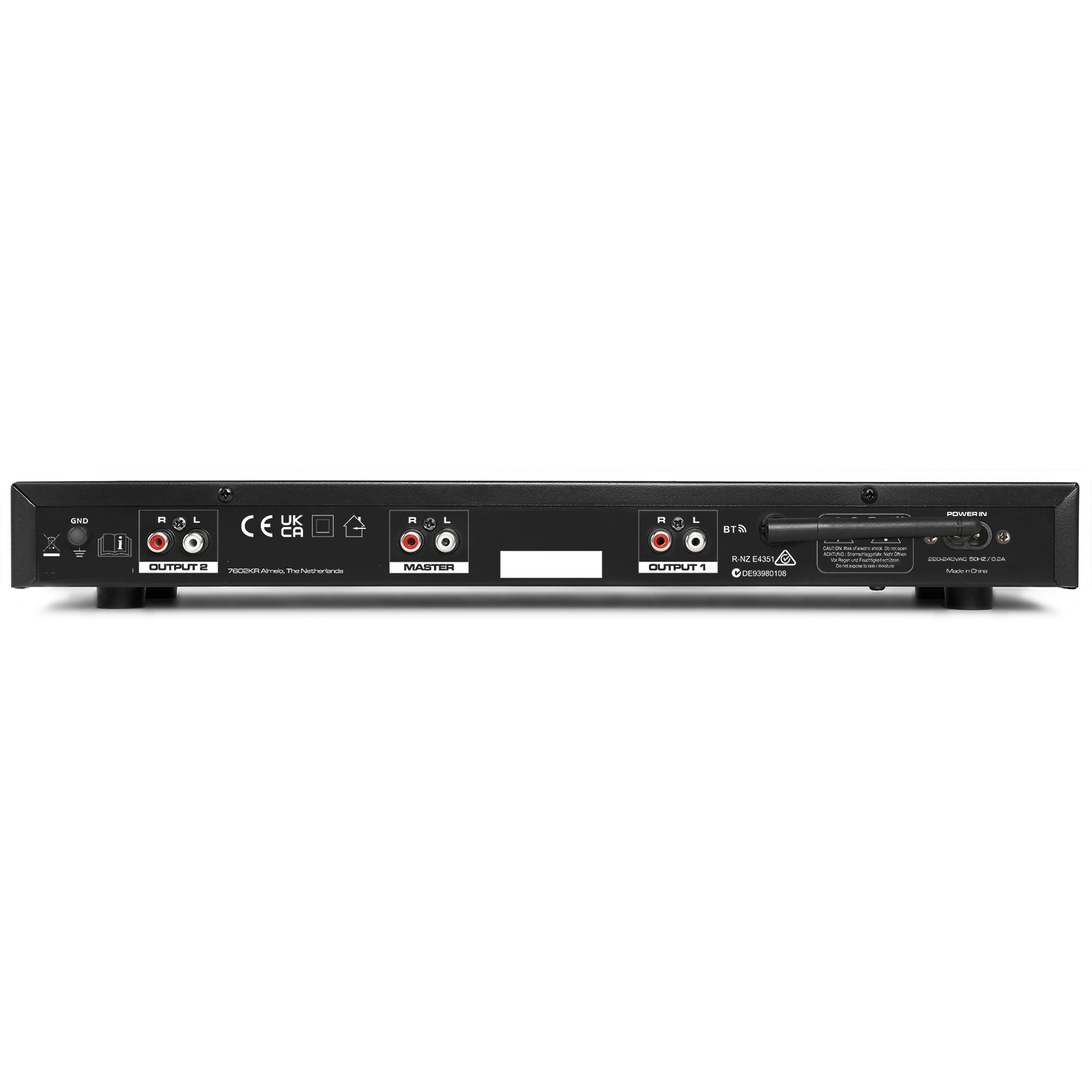 Die neue Generation von zweifach Media-Kombiplayer mit MP3 USB SD Player und integriertem 2-fach Bluetooth Empfänger mit 2-Audio-Ausgängen und einem Masterausgang + Alles in einem 19zoll Gerät. Ausgelegt für 24/7 Dauerbetrieb in Betrieb, Hotel, Firma in Verbindung mit Verstärker und auch ELA-Zentralen