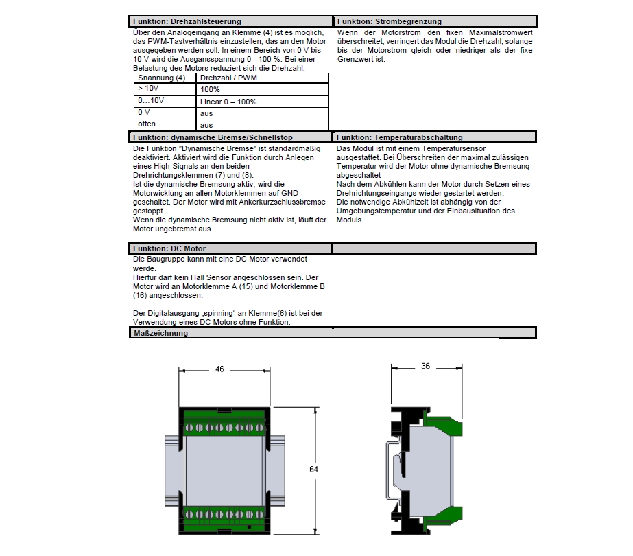 Das Modul UB-BL-2-24 kann auch mit DC-Motoren betreiben werden. Die Funktionalität unterscheidet sich nur beim Digitalausgang. Da keine Hallsensoren Ausgewertet werden ist der Ausgang ohne Funktion