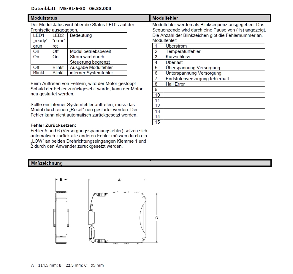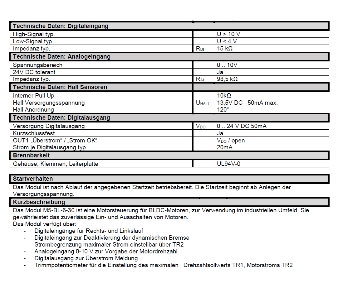 Das Modul M5-BL-6-30 ist eine Motorsteuerung für BLDC-Motoren, zur Verwendung im industriellen Umfeld. Das Modul gewährleistet das zuverlässige Ein- und Ausschalten von Motoren.