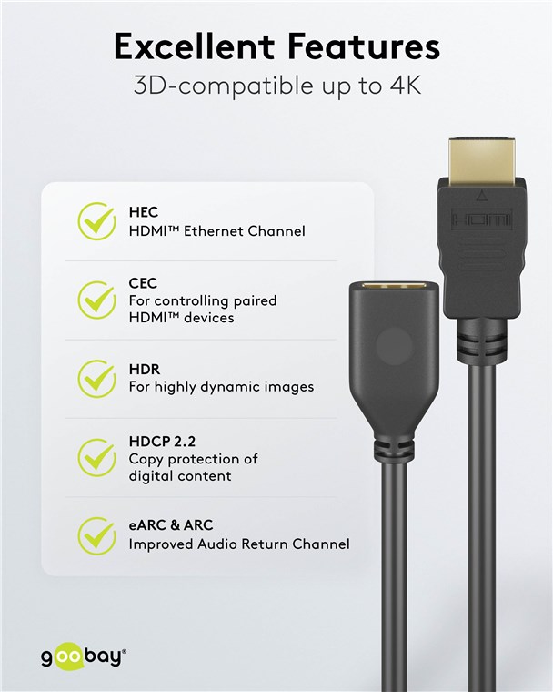 Produktinformationen "2m HDMI Verlängerung Stecker auf Buchse 1K 2K 4K eARC tauglich HDMI 2.0"