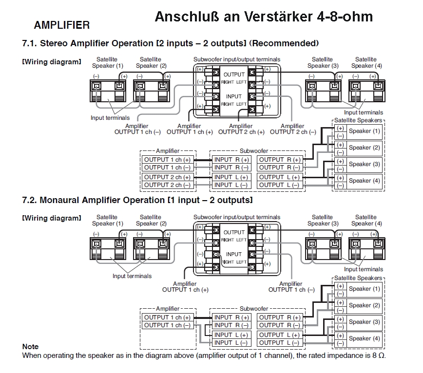 Impedanz 4-Ohm ( Betrieb über normalen 4-8-Ohm Verstärker )