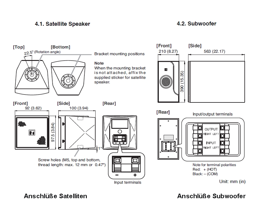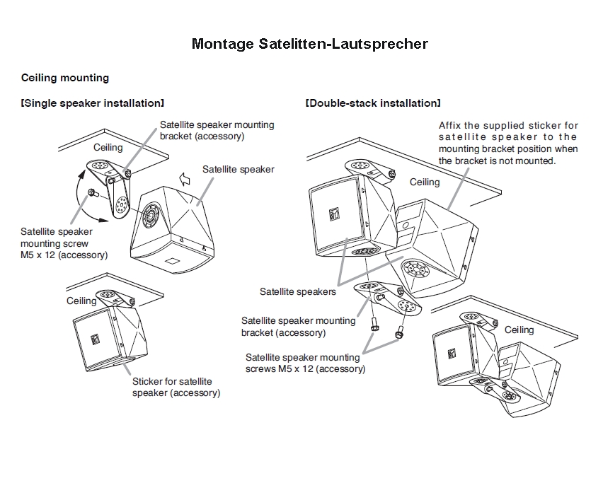 Es gibt 4 kleine Satellitenlautsprecher, die dem Design der kommerziellen Räumen entsprechen und mithilfe von Metallwinkeln installiert werden können, um auch in komplexen Räumen geeignete angepasste Klänge zu erzeugen. Siehe auch weitere Bilder !