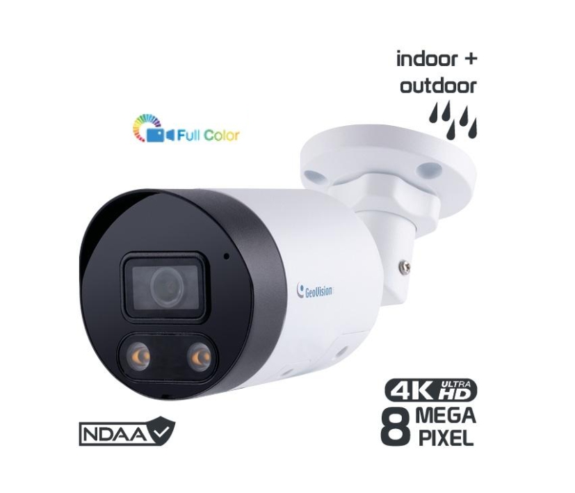 8-Megapixel GeoVision IP Zylinderklamera Bullet Outdoor Farbkamera, FullColor, Infrarot und Aktiv Alarm: