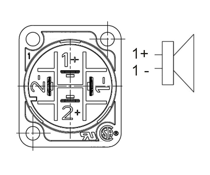 Lautsprecher Kupplung für PA-Boxen, Party-Boxen, Disco-Boxen, und Musiker-Boxen bzw. Endverstärker als Kabelverlängerung usw. 4-polige Kupplung mit Verriegelung Integrierte Kabelklemme für Kabel bis 12mm Durchmesser Berührungsichere Kontakte 4,8mm Steckkontakte oder verlöten üblicher Anschluss: 1+ = Signal-Plus, 1- = Signal-Minus.) bei einem Lautsprecher Pasendes Zubehör wie Stecker und Kabel siehe (Zubehör-Reiter bzw. Register)