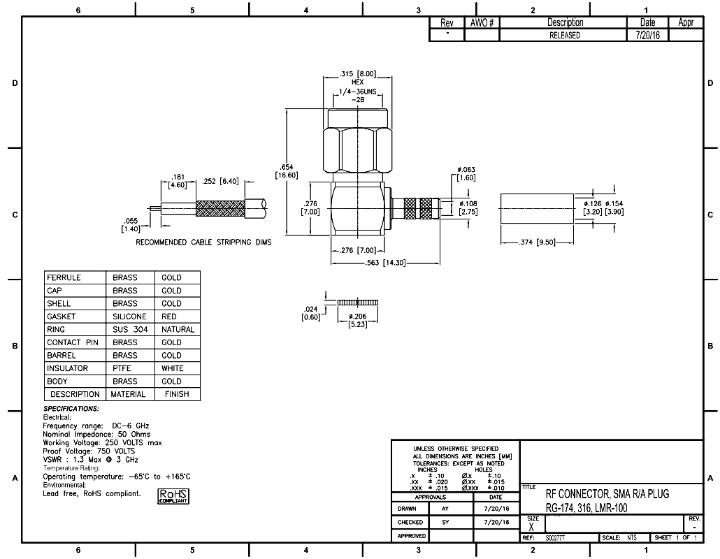 Produktinformationen "SMA Stecker gewinkelt für RG174 RG316 LMR100 Crimpversion SMA Winkelstecker vergoldet "