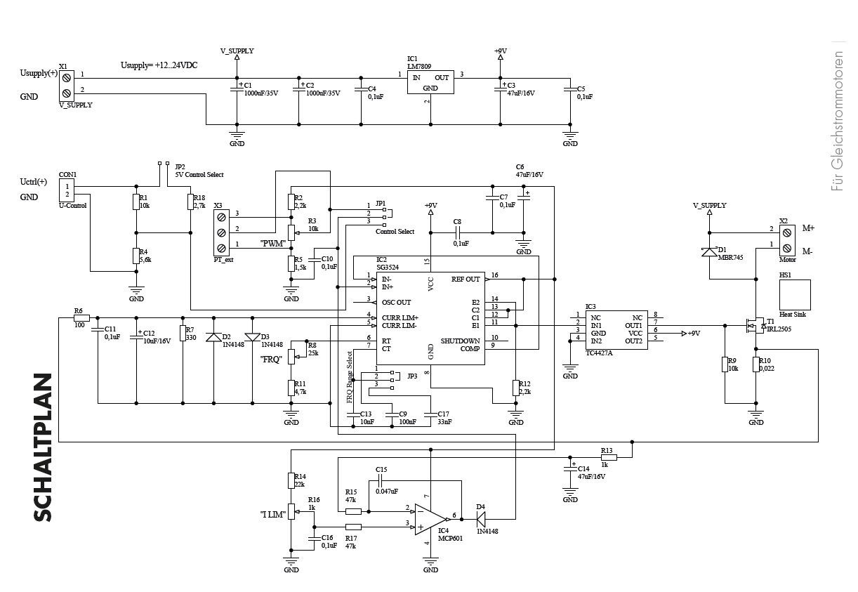 - Drehzahleinstellung: 0 – 100 % über Poti oder 0 ...5V DC