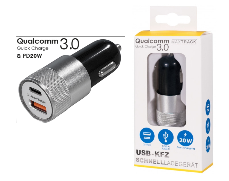 Mit einem vollen Akku lässt es sich besser reisen. Das 2-Port-Autoladegerät mit QualComm 3.0 Technologie. Handlich und klein lässt sich der USB-KFZ-Adapter gut in jedem Auto verstauen. Laden Sie jederzeit während der Autofahrt Ihre Akkus auf. Mit dem USB A und USB Typ C Anschluss sind Sie für jeden Anschluss-Typ gewappnet. Da kann nichts mehr schief gehen.