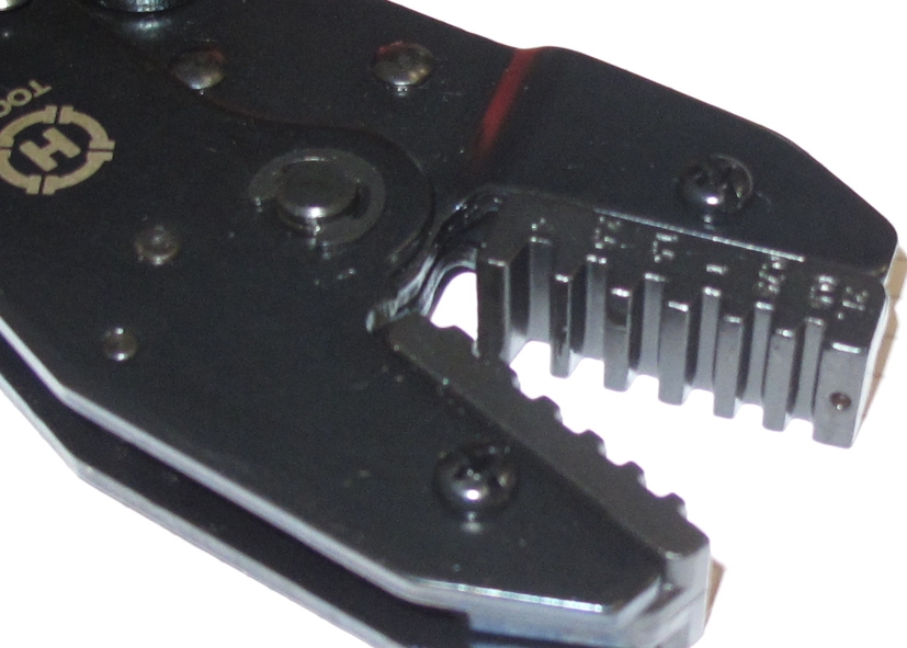 Crimpzange für unisolierte Steckhülsen. Sehr solide Quetschverbinderzange aus Vollmetall Zange Crimpzange mit 3 Kerben für unisolierte Steckhülsen und Kabelschuhe aller Art Crimpmaße bzw. Crimpmöglichkeiten: AWG = 20-18 / 16-14 / 12-10 DIN = 0,5-1,0 / 1,5-2,5 / 4-6qmm bevorzugt für Verbinder Aderngröße DIN 0,5-1,0 / 1,5-2,5 / 4-6 Durch die automatische Entriegelung haben Sie immer den richtigen Anpressdruck Solide und starke Metallausführung für den täglichen Einsatz geeignet Crimp-, bzw. Klemmblockbreite 10mm