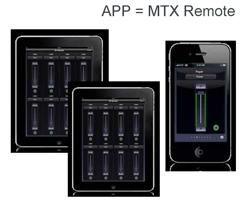 Für wandmontierte Anschlussfelder für Line-Quellen bzw. Mikrofone stehen zwei weitere Eingänge zur Verfügung. Bedienen lässt sich der AUMTX entweder über optional erhältliche LCD-Control Panels ( MWX65 ), über das umfassende Web-Interface oder die Remote App für iPhone/iPad.