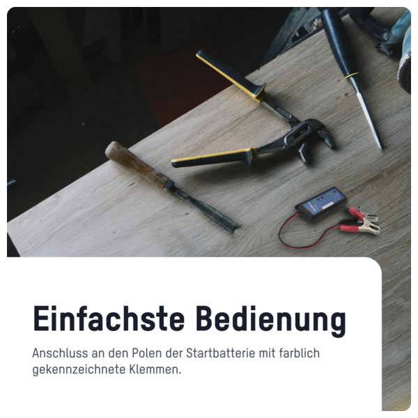 Testgerät zur Prüfung von 12V Kfz-Starterbatterien im Auto, KFZ, Transporter oder Wohnmobil