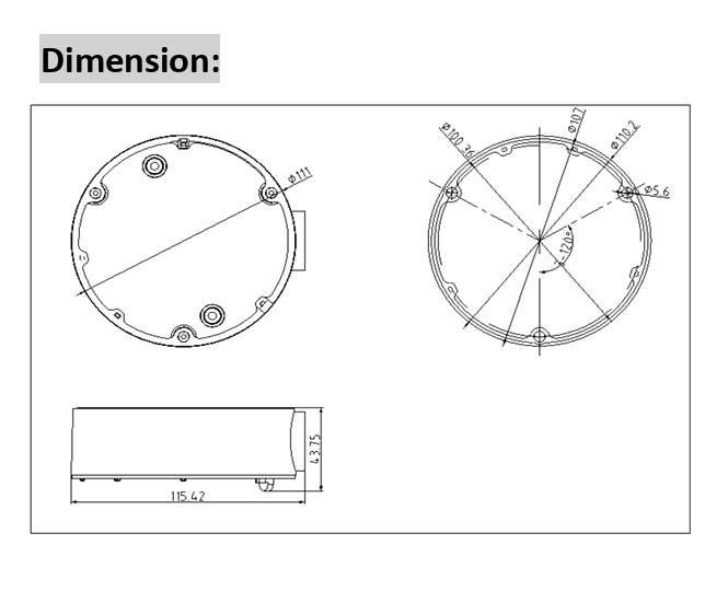 Kamera Anschlusskasten Kabelverteiler Kabelbox So ist alles sauber und ästhetisch ansprechend verlegt und verdrahtet.Sieht immer sauber aus und ist gut geschütz Installationsfreundlicher denn je, alle Anschlüsse von Kameras mit BNC-, Strom- und oder LAN Steckern in einem Gehäuse untergebracht. Durch die neue Architektur der Kameras werden alle Kabel innen durch den Standfuß zu der neuartigen Montagebox aus hochwertigem Aluminium geführt. Die Montagebox wird direkt unter den Fuß geschraubt und wirkt wie eine erweiterte Standfußplatte. Aber sie ist natürlich groß genug, um alle Kabelverbindungen zu beherbergen. So ist alles sauber und ästhetisch ansprechend verlegt. Technische Daten: Vandalen sicher Sehr starkes stabiles Metall Aluminium und elektroverzinkten Stahl (SECC) Anschlussdose Universell verwendbar für div Hersteller mit selben Befestigungslöchern siehe Zeichnung Modernes Design PG Kabelverschraubung seitlich Gewinde: M20 Schutzgrad: IP66 Primär Outdoor aber auch Indoor verwendbar PS: es passt auch ein kleines 12V Netzteil ggf. hinein Abmessungen: Durchmesser 90mm H: 35mm ( siehe auch Zeichnung weitere Bilder ) Befestigungslöcher Kamera = 3x M4 Gewinde ( Abstand Gewinde zu Gewinde 49mm / Lochkreis 56mm ) Kabeleinlass mittig Durchmesser: 30mm Temperatureinsatzbereich: -40...+80°C Belastbarkeit bis 3Kg Gewicht: 0,64Kg passendes Zubehör wie Kameras, Mini 12V Netzteile Masthalter Rohrhalterung z.B. für Dachrinne 79-400-00188 usw. siehe im Zubehör Register Vergleichbarere Artikel = 79-224-02910 oder 79-224-02920 oder 79-224-02940 siehe ähnliche Artikel