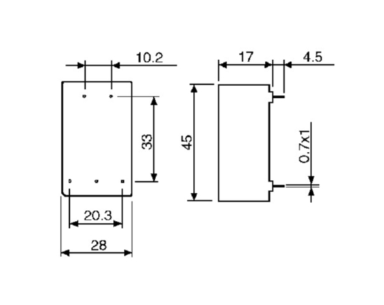 - Abmessungen: B: 28,0mm L: 45mm H: 17mm