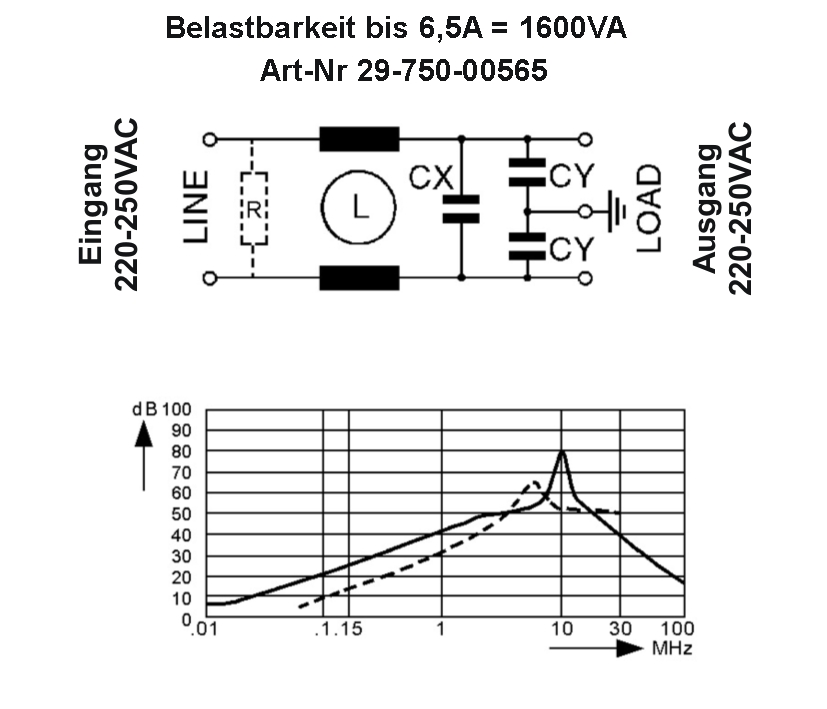 - Funkentstörfilter 230V KST 6,5A 250V L = 2x1,0mH+ CX = 0,10uF + CY = 2x2500pF X1Y1