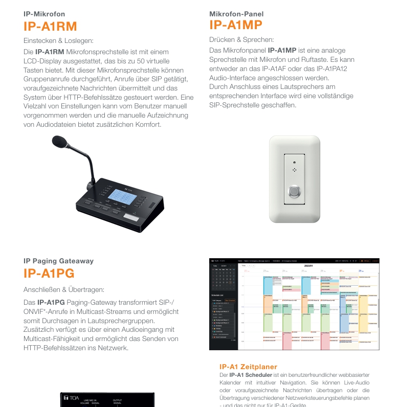 - System-Stummschaltfunktion zum Stummschalten aller Geräte der IP-A1-Serie im Netzwerk
