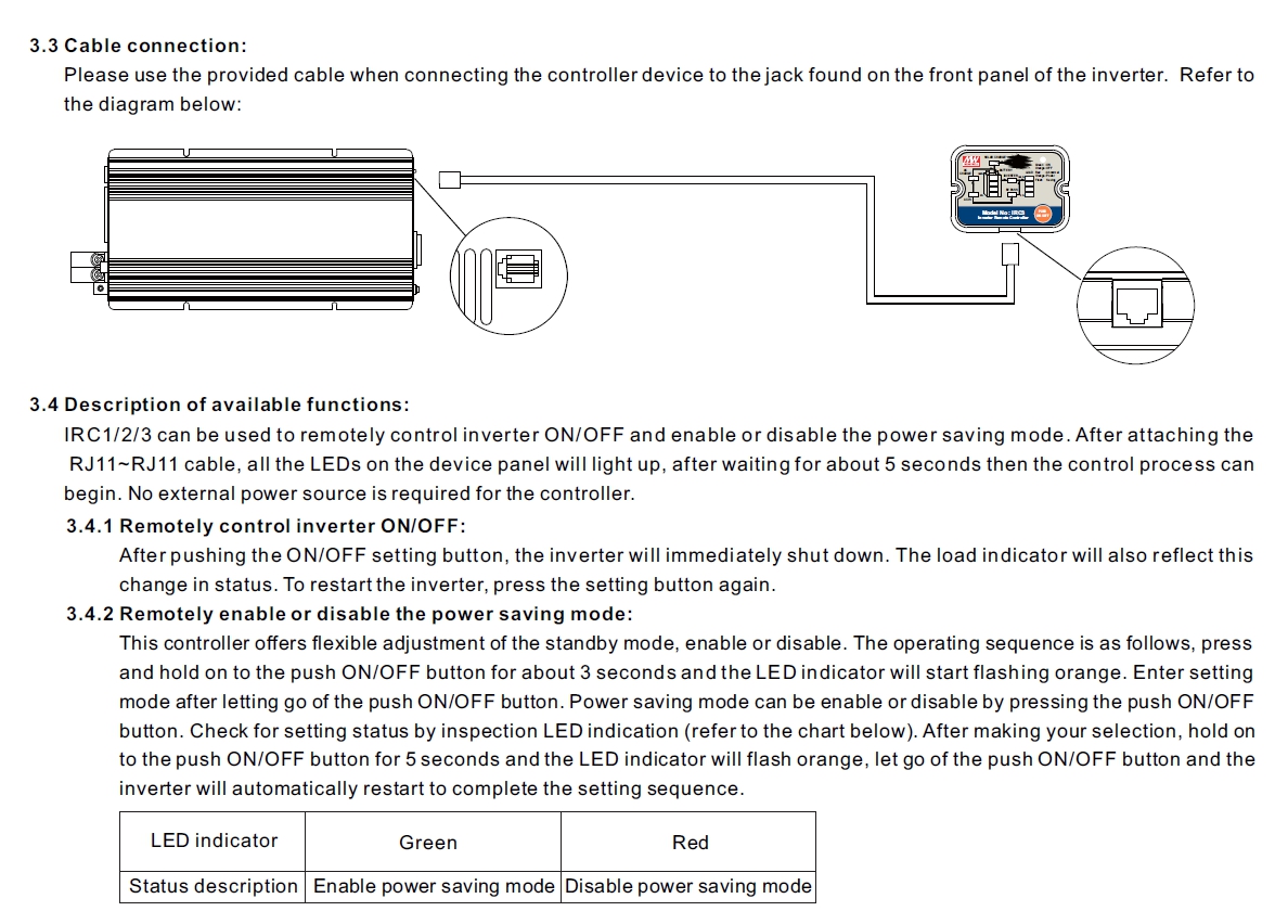 Das Panel kann das von der Wechselrichterserie gesendete RS-232 Signal dekodieren und über ein digitale bunte LED dann auch den Status des Wechselrichter anzeigen. So können Sie den verbauten Wechselrichter überwachen, Fernsteuern bzw. Belastung des Wandlers erkennen.