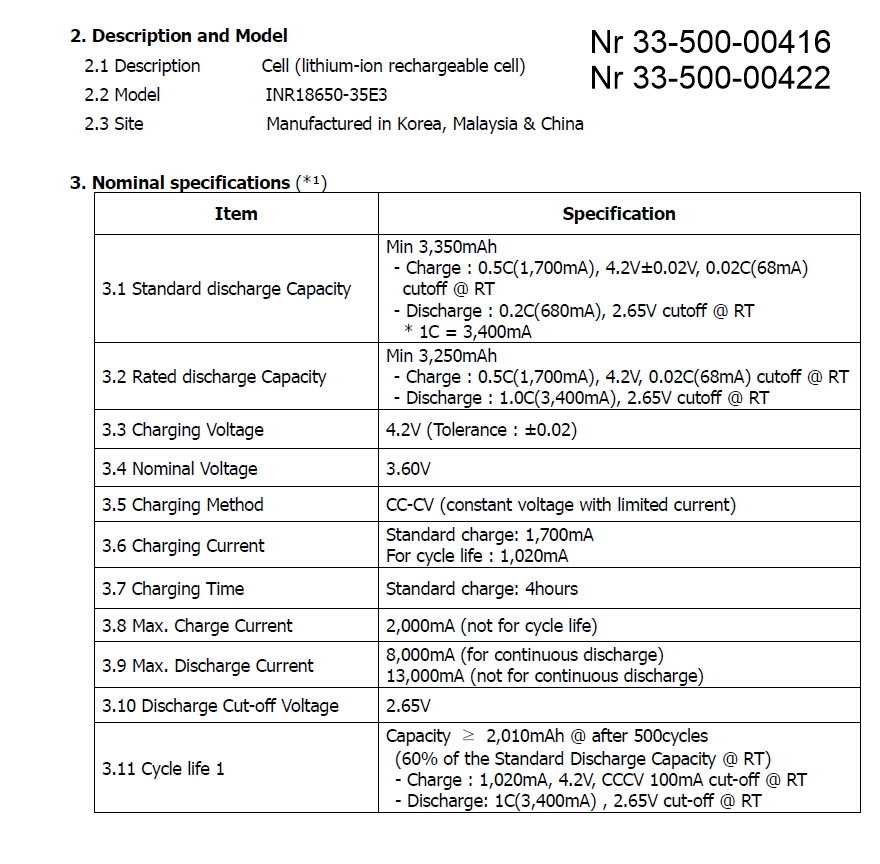 - Standard Discharge min Capacity = 3,350mAh