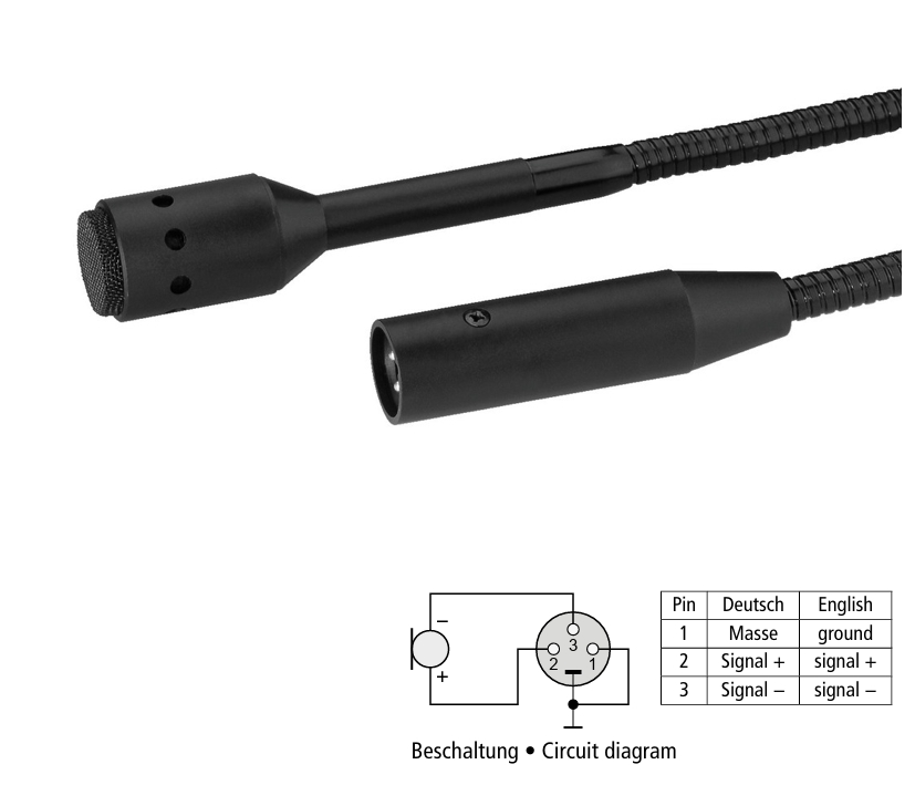 Die Einsatzmöglichkeiten sind sehr vielfältig - da keine Stromversorgung benötigt wird. Schwanenhals-Mikrofon. Dynamische Mikrofone mit einer Gesamtlänge von 565mm und einen üblichen 3-pol XLR-Stecker. Dieses Mikrofon hat eine symmetrischer Beschaltung.